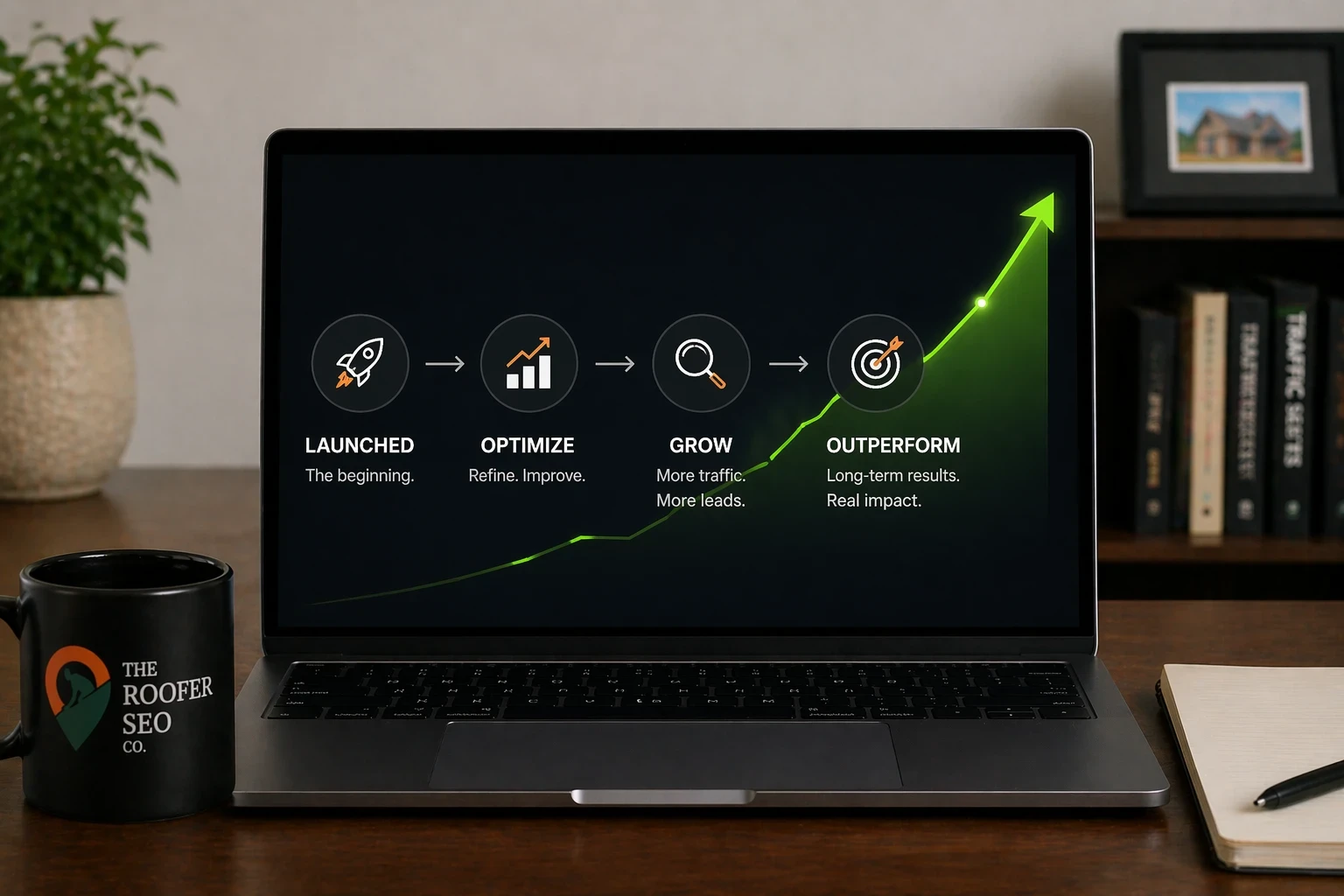 Every roofing website we build is custom-designed, SEO-optimized, and owned entirely by the client. We don't use templates, we don't lock you into proprietary platforms, and we don't build sites that sit on page seven of Google collecting dust.