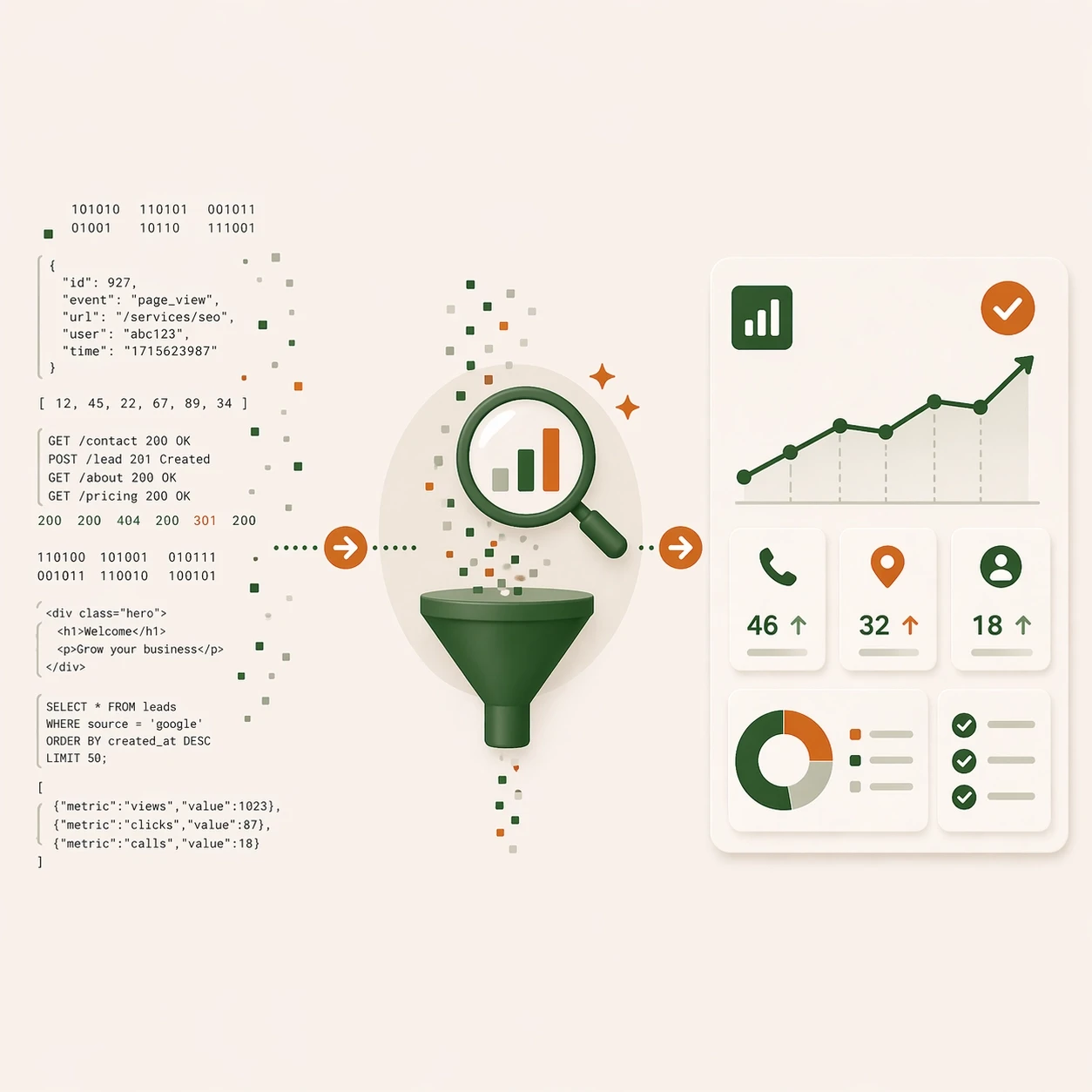 A dashboard you can actually read. Every call tracked. Every form submission logged. No jargon.