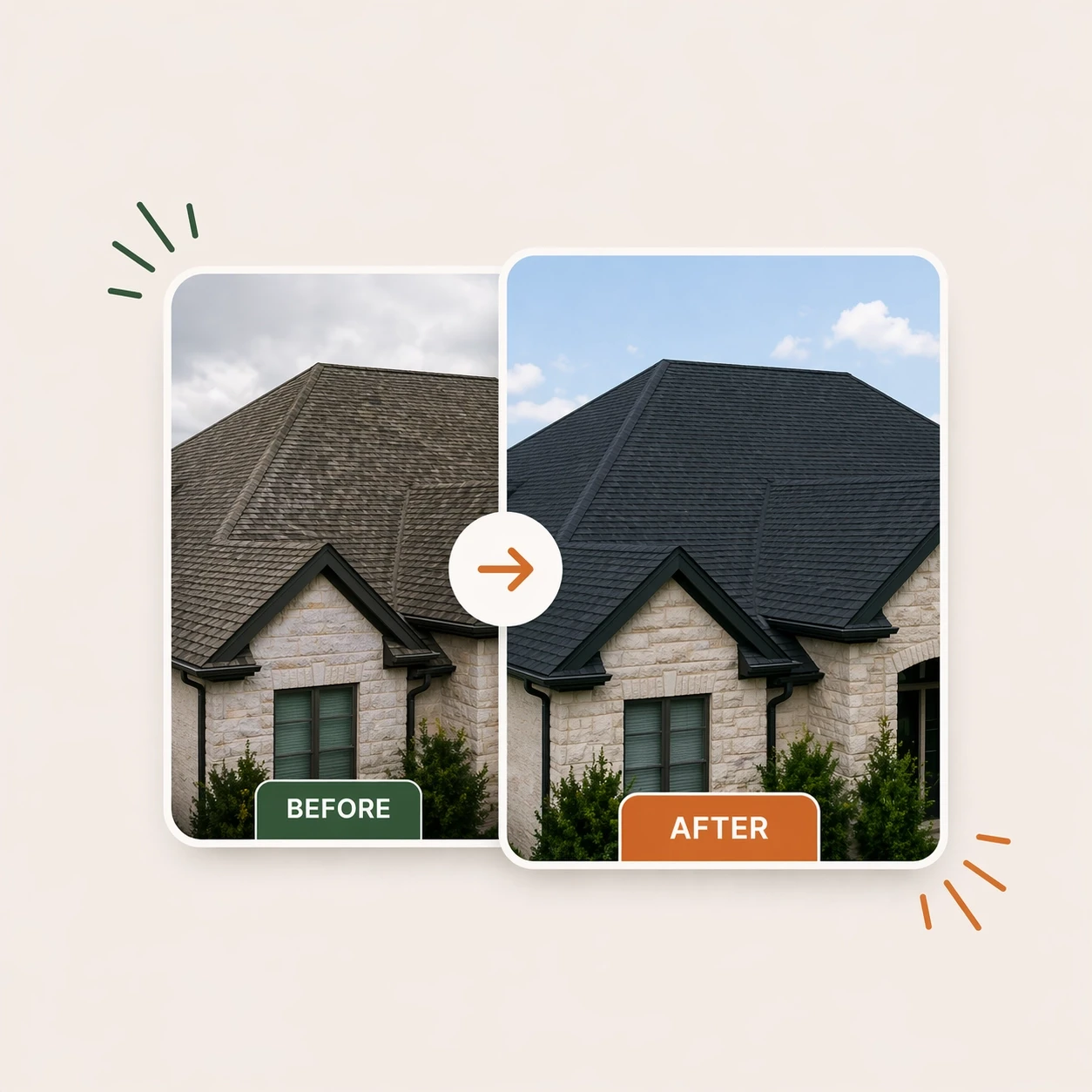 Real photos of your work Your crew, your projects, your neighborhoods. Authentic proof that builds trust. | Stock photos of models in hard hats Generic images of people who've never touched a shingle. Homeowners see through it instantly. |